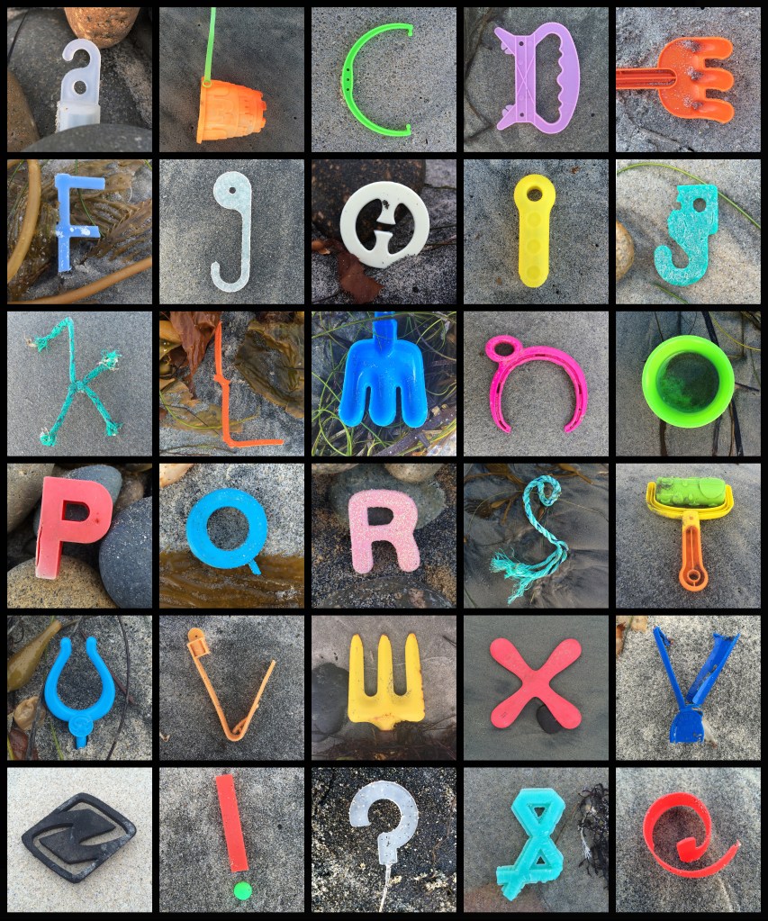 Alphabet Soup is a compilation of letter-shaped plastic items found on North County San Diego beaches. The title references the fact that the concentration of plastics in the garbage patches are not islands of large pieces of floating debris. Rather, the accumulated plastics are more like a soup of swirling microplastics, some of which are so small they aren’t even visible. In fact, it’s possible to sail through one of the garbage patches and see very little plastic, but it’s there, floating on the surface and swirling throughout the water column.